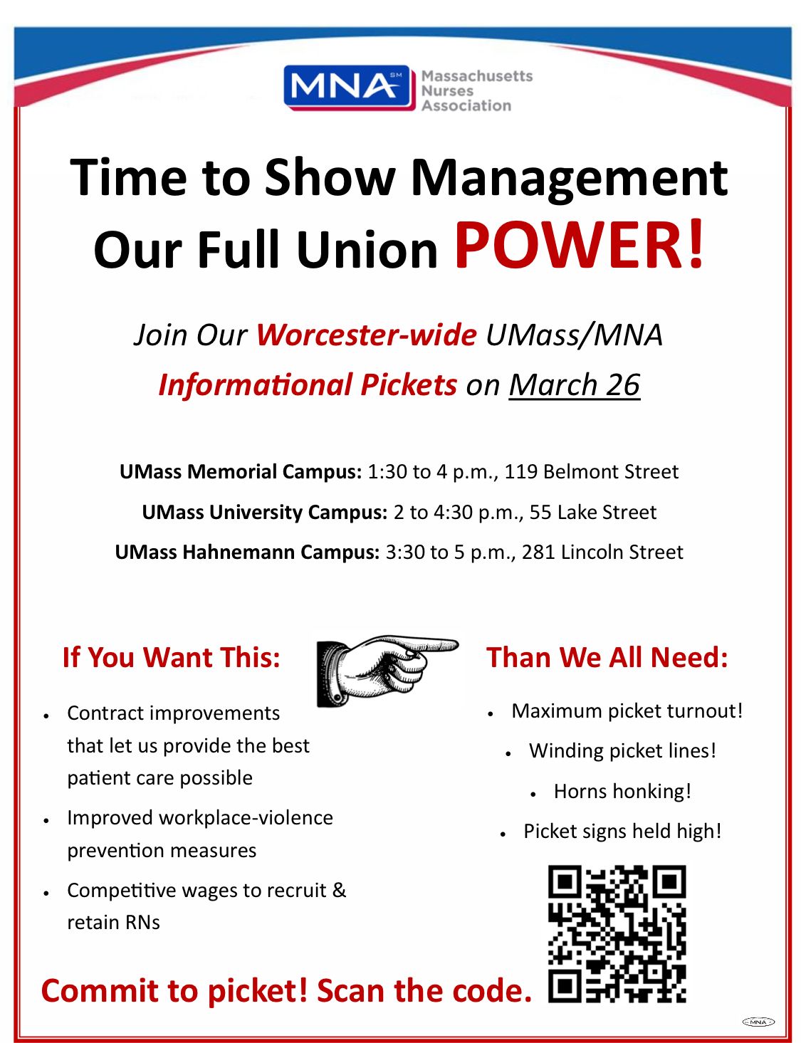 MNA is holding informational pickets in a few locations across Worcester.  Please join a line in support of nurses if you are able