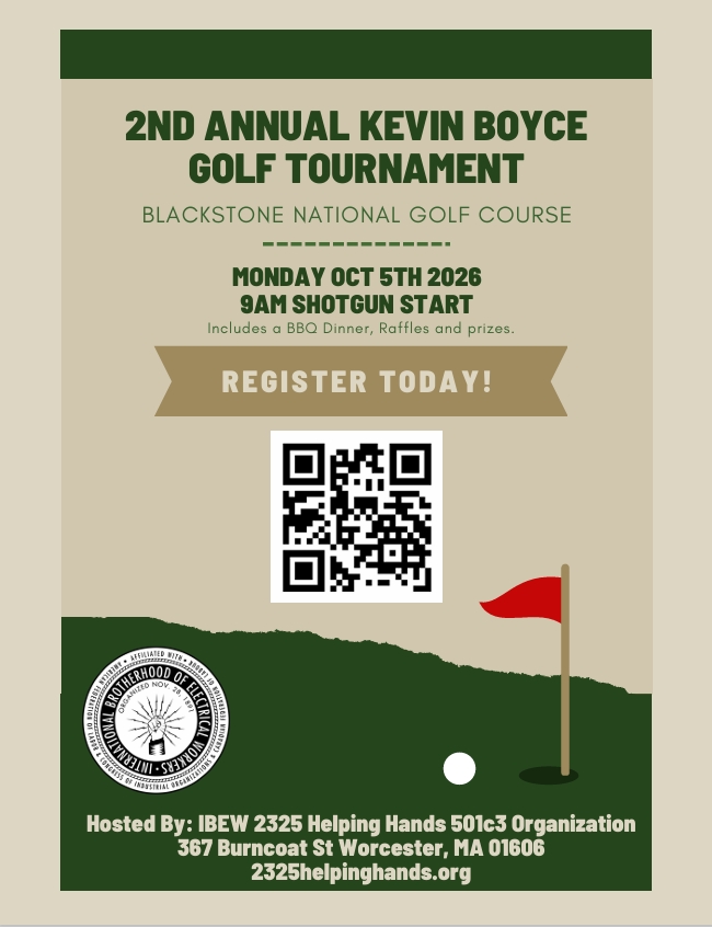 We’ve also made updates to the IBEW 2325 website (ibew2325.com). New or updated tabs for Legrand and Movement Labs are now available, providing access to current contracts and MOUs. In addition, our “2325 Helping Hands Benevolent Fund” page has been added. This page will include updates on our charitable efforts, including food drives, toy drives, and our 2nd Annual Kevin Boyce Golf Tournament.